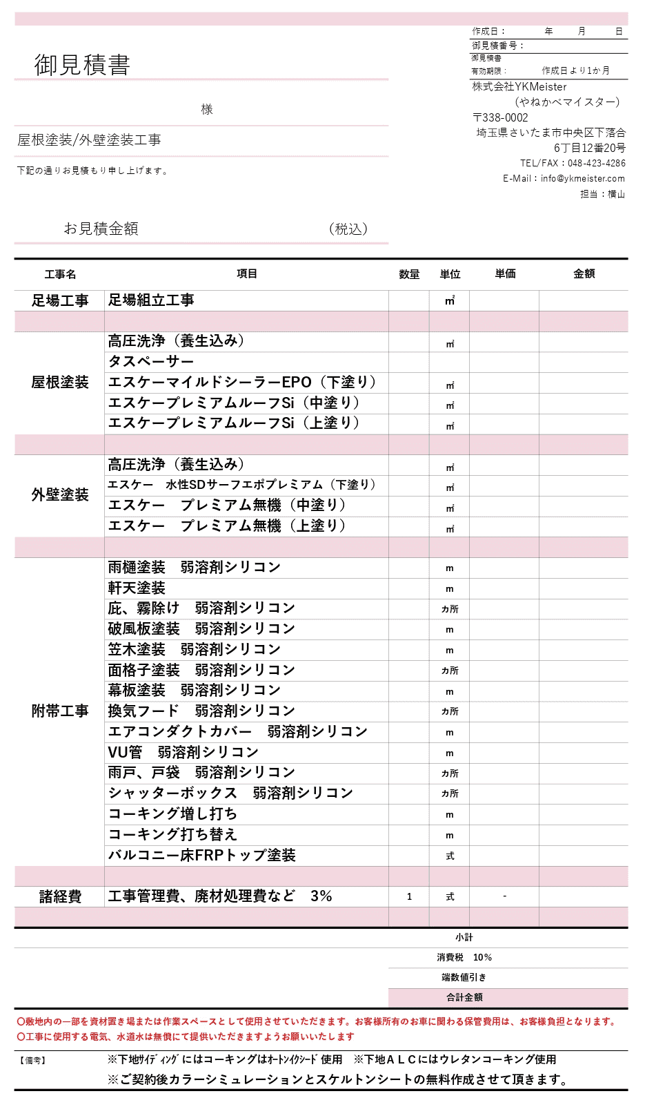 屋根・外壁塗装工事のお見積書
