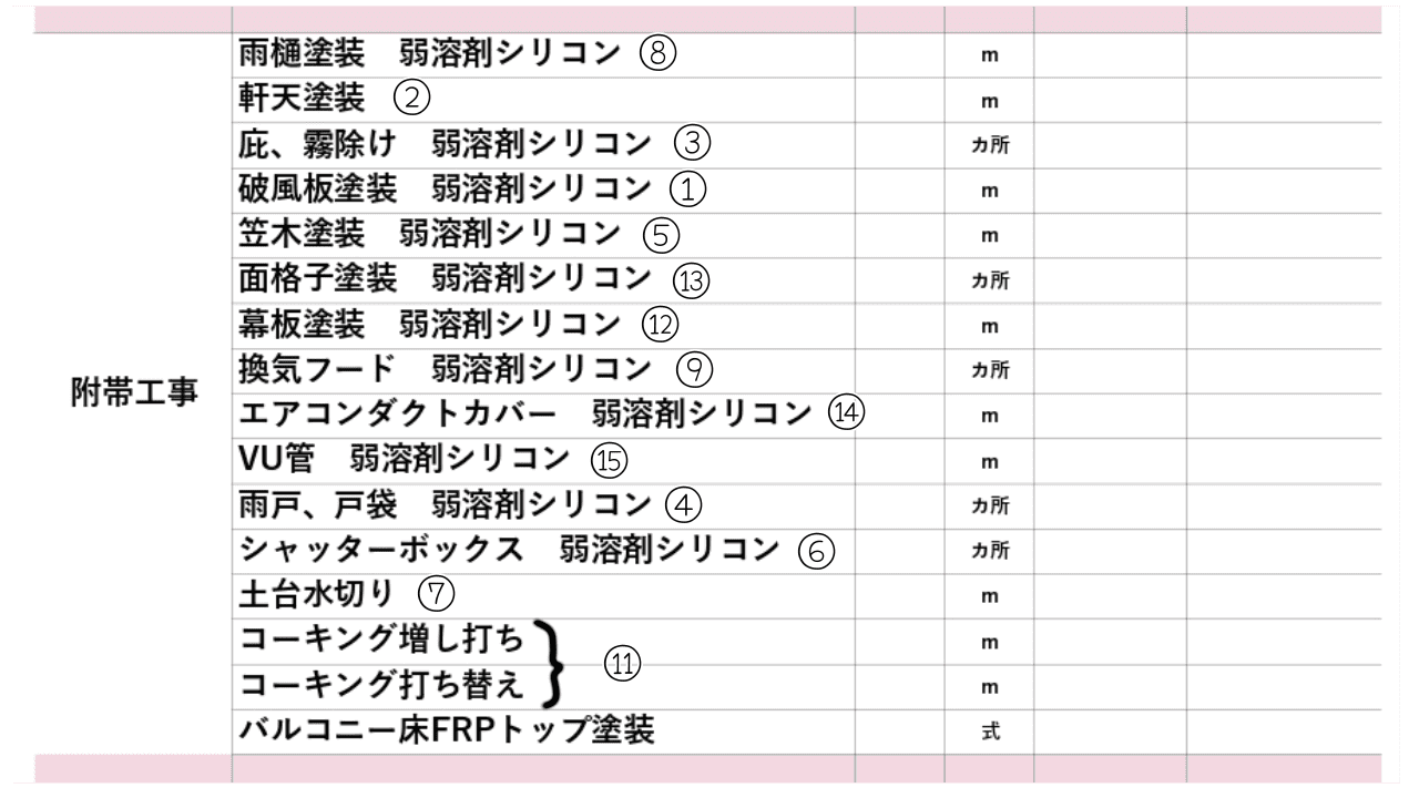 その次は『付帯工事』です。外壁塗装は「塗装するかどうかを決める箇所」が沢山あります。