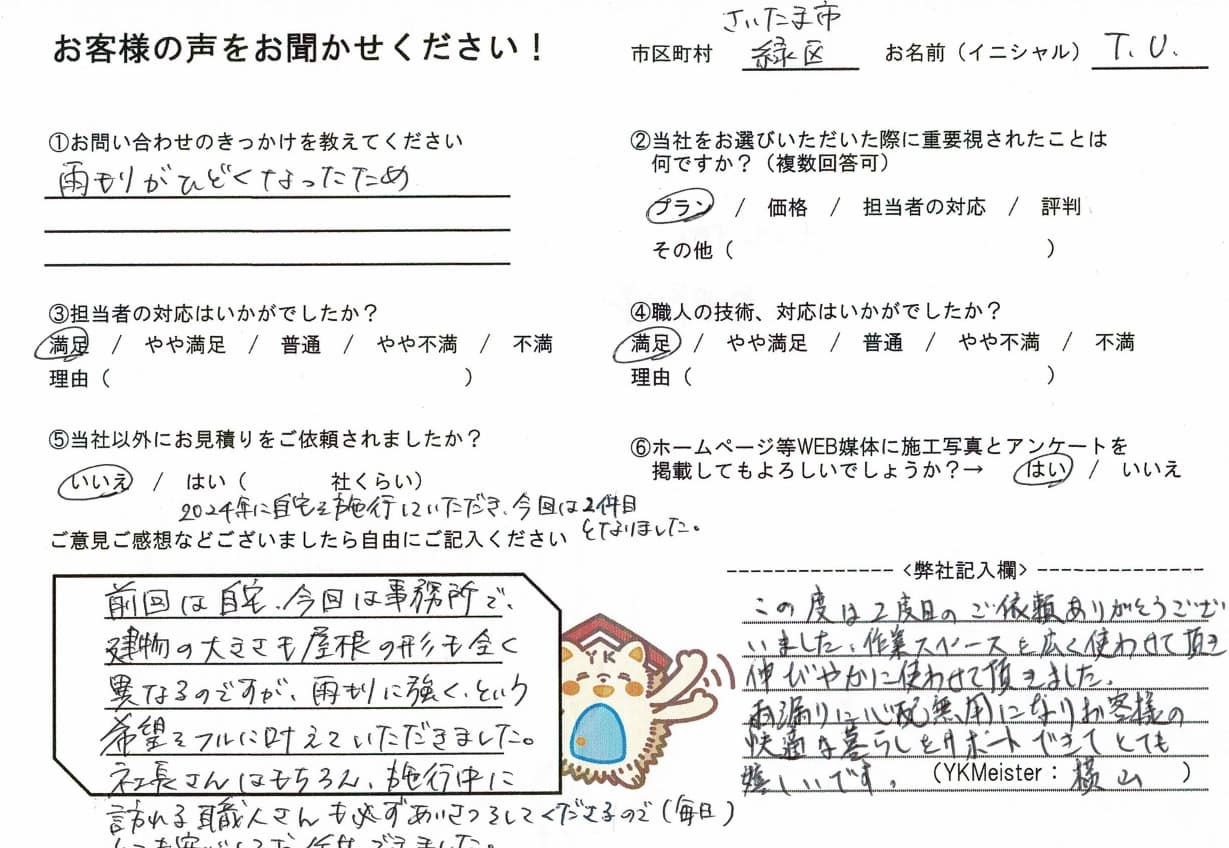 雨漏りの心配が無くなり、快適な暮らしのサポートが出来てとても嬉しいです☆