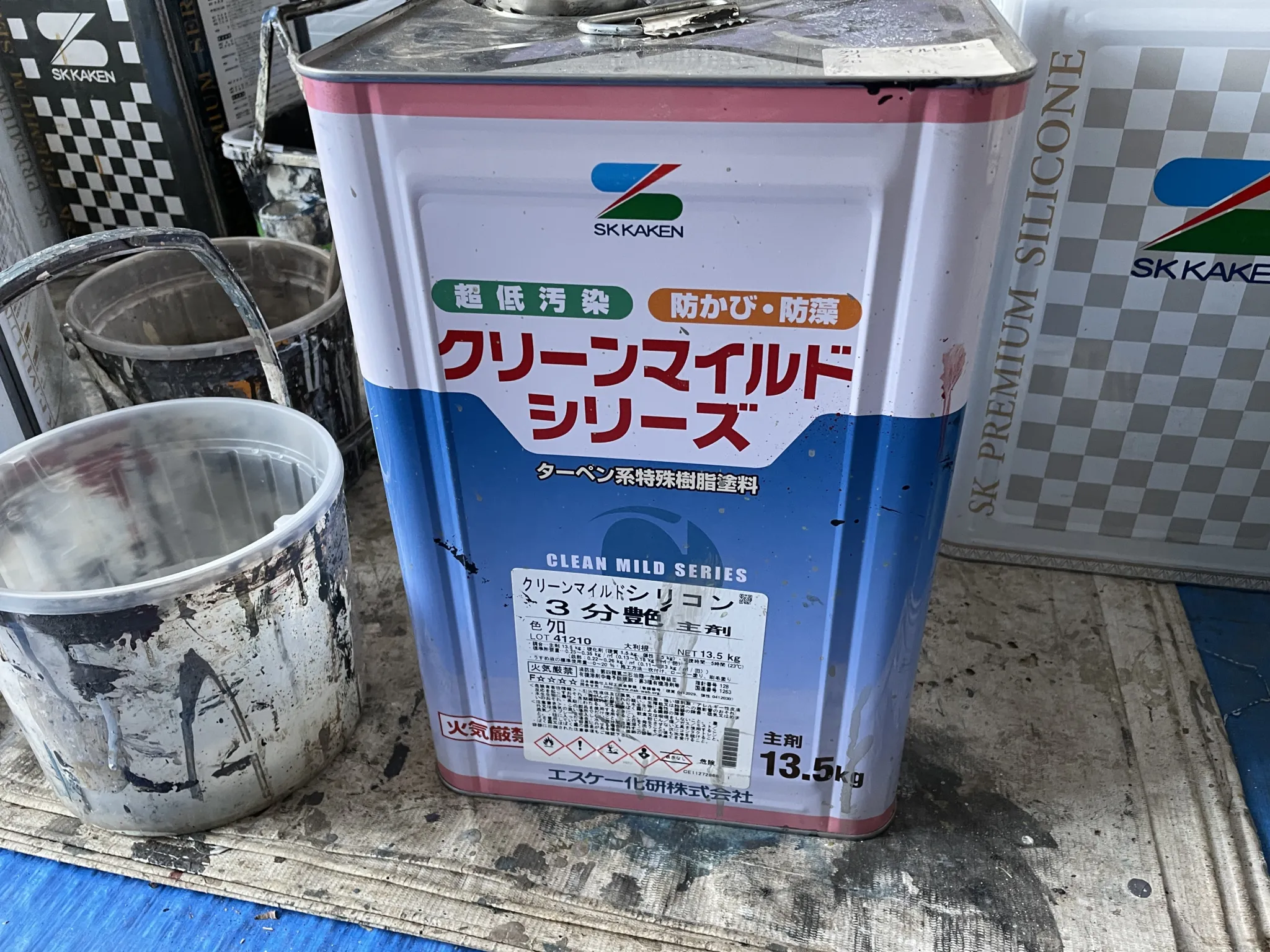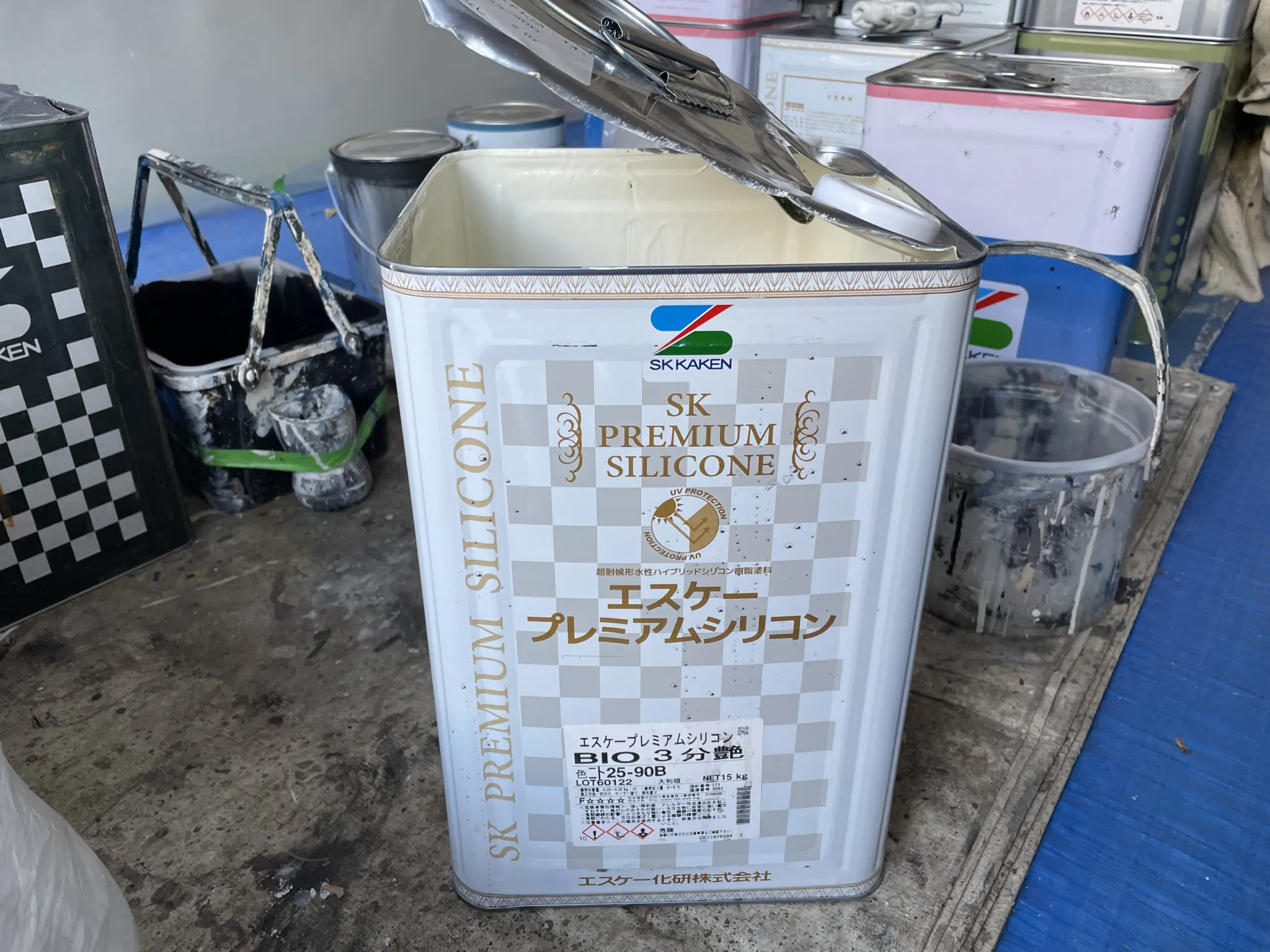 今回使用した塗料は「エスケープレミアムシリコンBIO 3分艶」です。